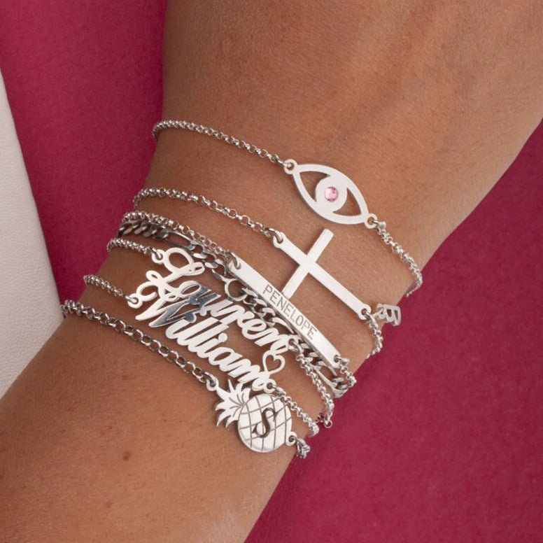 Personalize this two name bracelet with the names of you and your loved one, symbolizing the unique connection you share. The heart pendant serves as a reminder of the deep love and affection that unites you both.